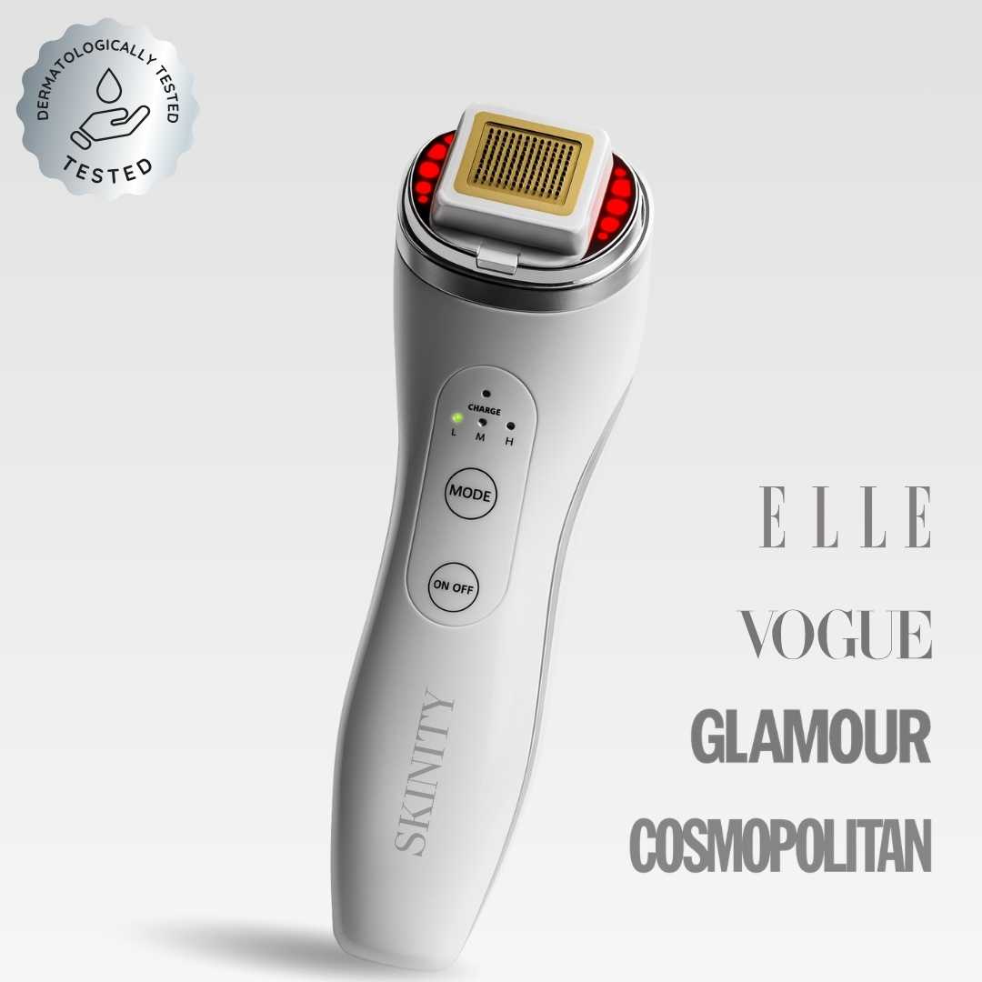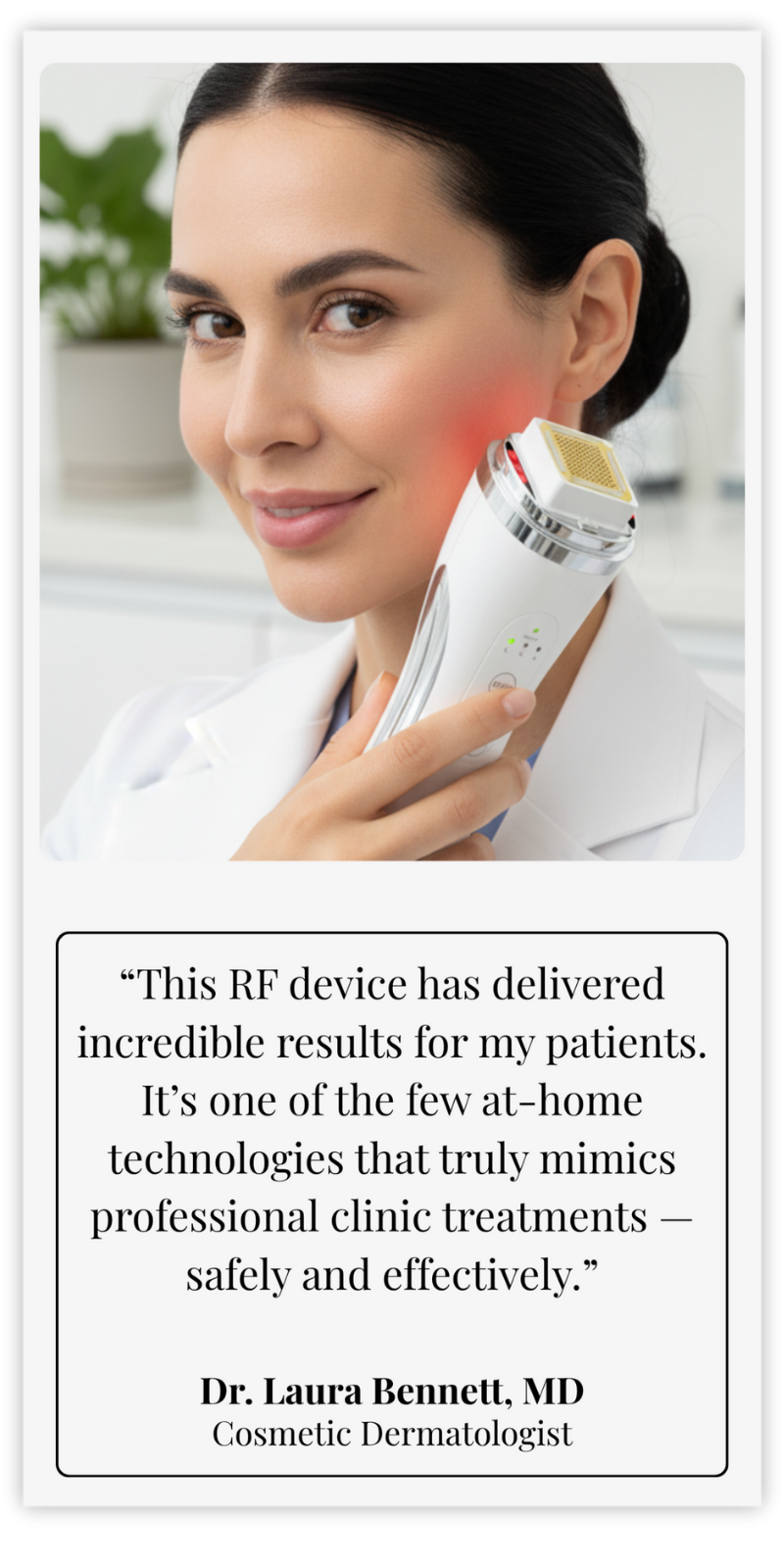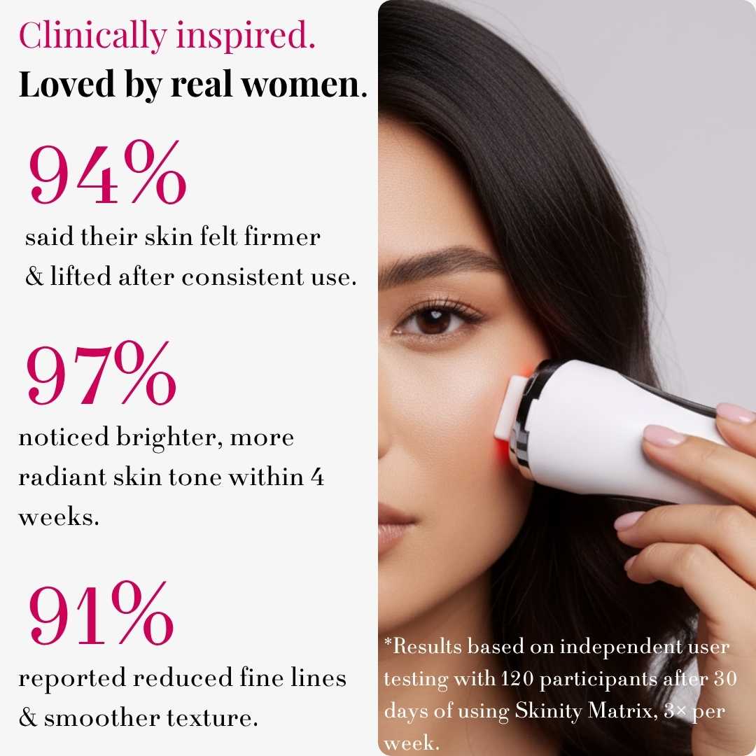 The Skinity Matrix™ uses fractional RF to reach 3mm deep without needles or skin damage. Deep enough for real collagen synthesis. Gentle enough for zero side effects.
