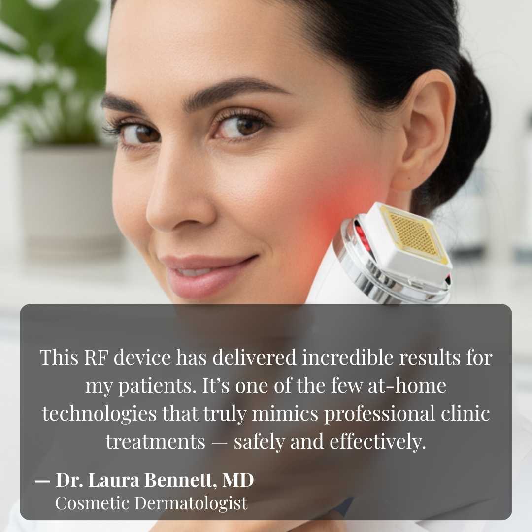 The radiofrequency energy creates precise, controlled heating in the dermis at approximately 42-45°C. This thermal effect causes existing collagen fibers to contract and partially denature — initiating your skin's natural repair response.