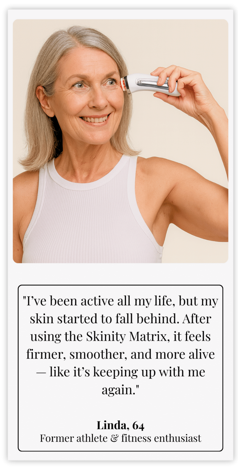 When the Skinity Matrix contacts your skin, fractional radiofrequency energy penetrates through the epidermis and reaches the dermis — the deeper structural layer where collagen, elastin, and hyaluronic acid reside. These proteins are essential for skin firmness, elasticity, and hydration.